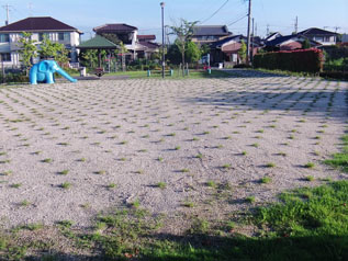 遠目から見ても芝生が植えてあるのが分かるまでに成長しています。 |